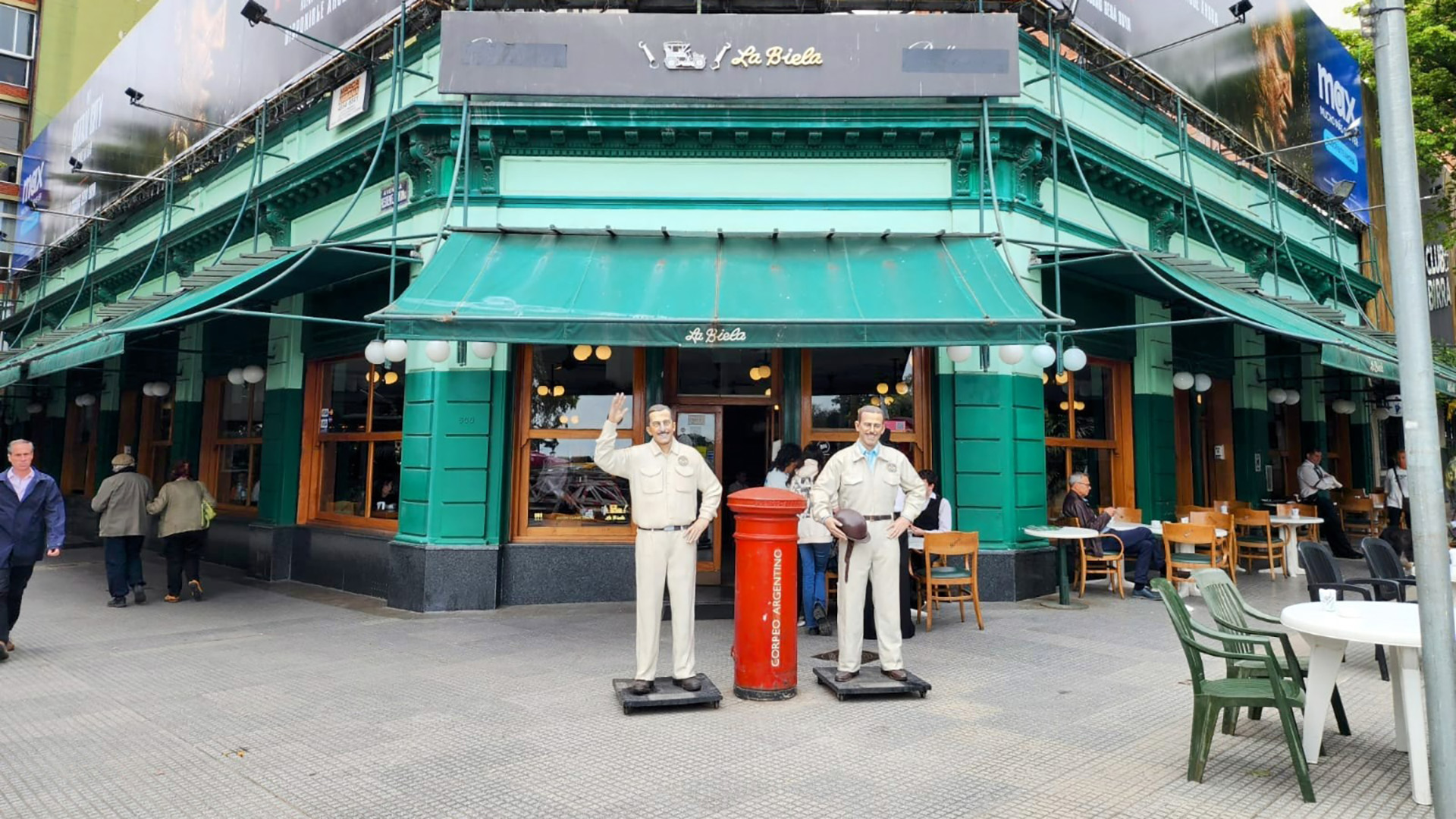Parte de esa evolución se percibe también en su estructura. Con el tiempo, se expandió hacia la vereda, incorporando mesas al aire libre frente a la plaza, una imagen que hoy es característica del paisaje urbano porteño. Ese escenario, acompañado por un histórico gomero que domina la escena, se convirtió en una postal emblemática para quienes visitan la ciudad.
